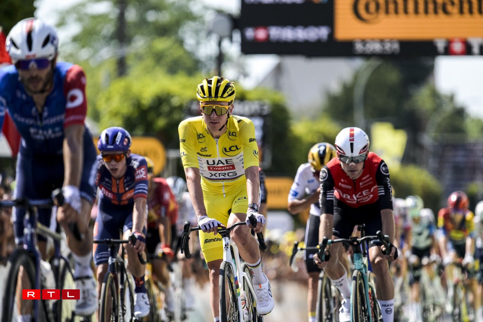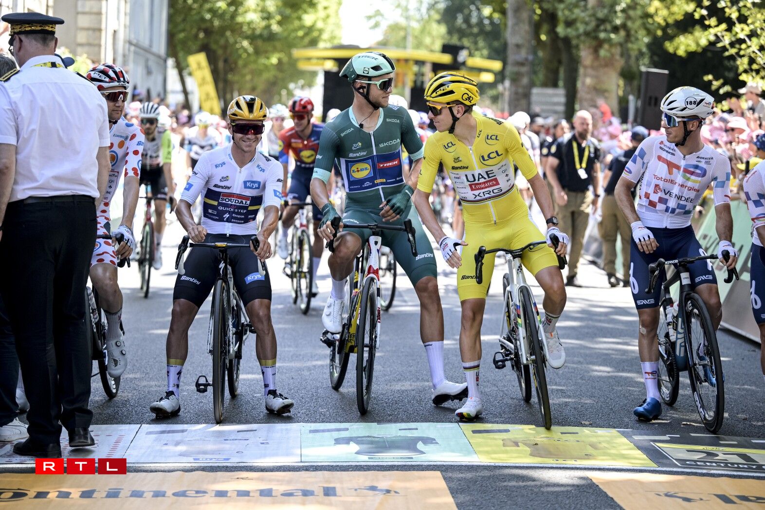 Am General huet sech un der Spëtzt näischt geännert. Den Tadej Pogacar huet 54 Sekonne Virsprong op de Remco Evenepoel an 1'11'’ op de Kévin Vauquelin.