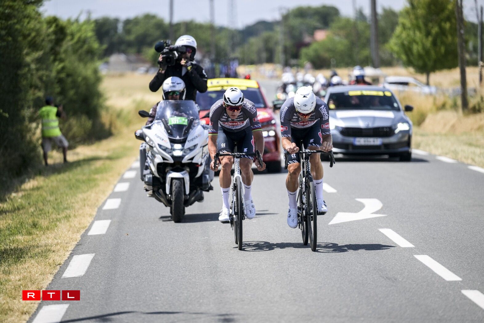 Op der 9. Etapp ass et fir d’Coureuren iwwer flaach 174,1 Kilometer vu Chinon op Châteauroux gaangen. D’Course gouf gepräägt vum Jonas Rickaert a Mathieu van der Poel. Béid Alpecin-Fuerer hu sech vun Ufank un ofgesat, mam Zil, dass de van der Poel den Tëschesprint no 24 Kilometer gewënnt a domatt 20 Punkten op säi Konto kritt. Dëst sollt dem Hollänner dann och geléngen. Aus dem Peloton eraus huet den aktuelle Maillot Vert Jonathan Milan déi drëtte Plaz an domat 15 Punkte geholl. Béid Alpecin-Coureuren kruten e maximalen Virsprong vu ronn 5 Minutten a 30 Sekonnen op de Peloton.