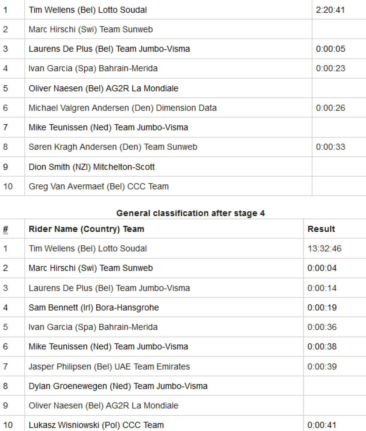 Den Tim Wellens vun Lotto Soudal huet déi 4. Etapp vum Binck-Bank-Tour an der Belsch knapp virum Marc Hirschi a Laurens de Plus gewonnen an ass elo neien Leader am General.