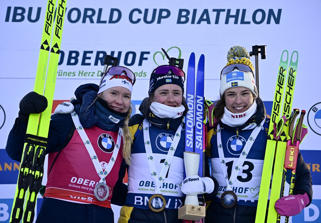 Am däitschen Oberhof huet d’Eliva Öberg eng Start-Zil-Victoire an der Biathlon-Verfollgung gefeiert. E Samschdeg hat si schonn de Sprint gewonnen. Mat just engem Schéissfeeler huet d’Schweedin hirer Konkurrenz keng Chance gelooss an hat eng komfortabel Avance op déi Zweetplacéiert Finnin Suvi Minkkinen (+ 16,6 Sekonnen) an op hir eeler Schwëster Hanna Öberg (+ 1:04,5). D’Franséisin Julia Simon konnt sech trotz dräi Schéissfeeler virun der Däitsch Franziska Preuß (2 Schéissfeeler) déi véiert Plaz sécheren.