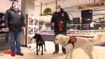 Anescht wéi aner Hausdéieren dierfen de Sunny an de Lex mat an de Supermarché eran. Dat ass och wichteg, well och hei hëllefe si mat: “Et ka mol virkommen, dass mer eppes op de Buedem fält. A well ech mech net gutt bécke kann, hëlleft hie mir dann, dat opzerafen.”